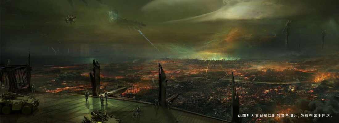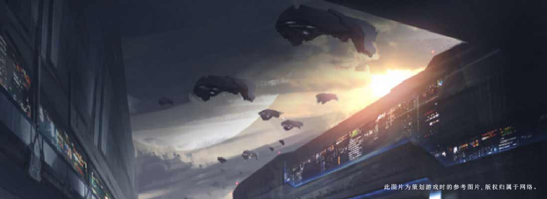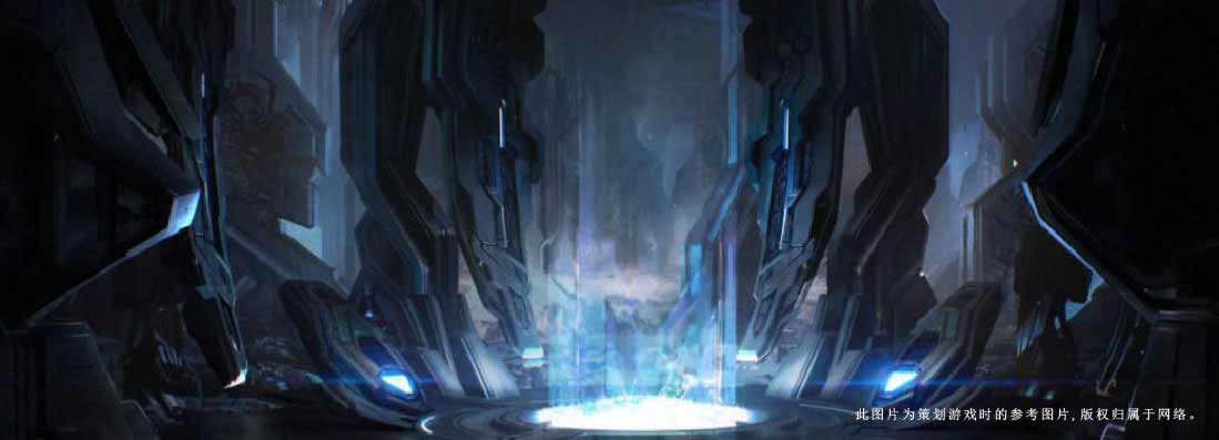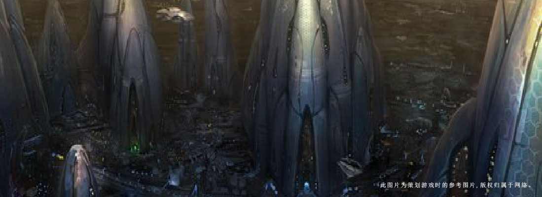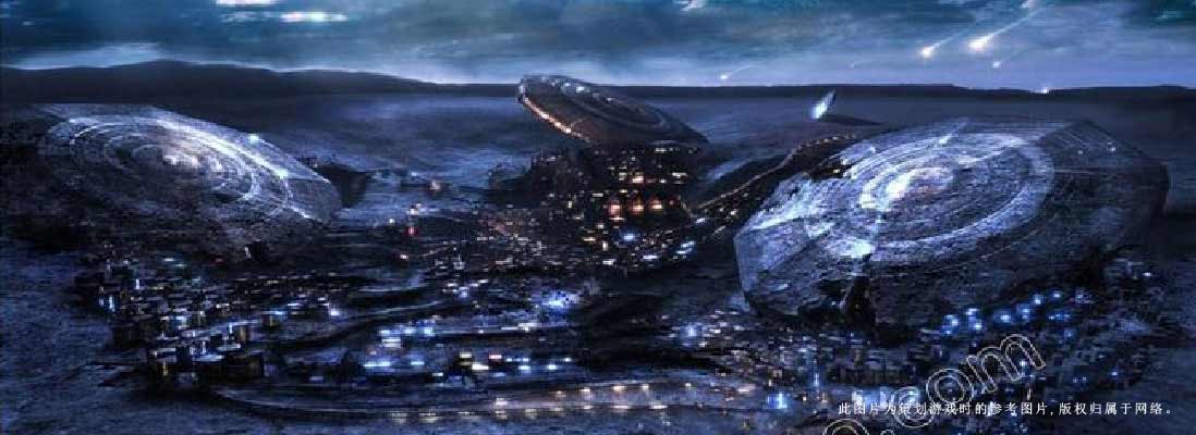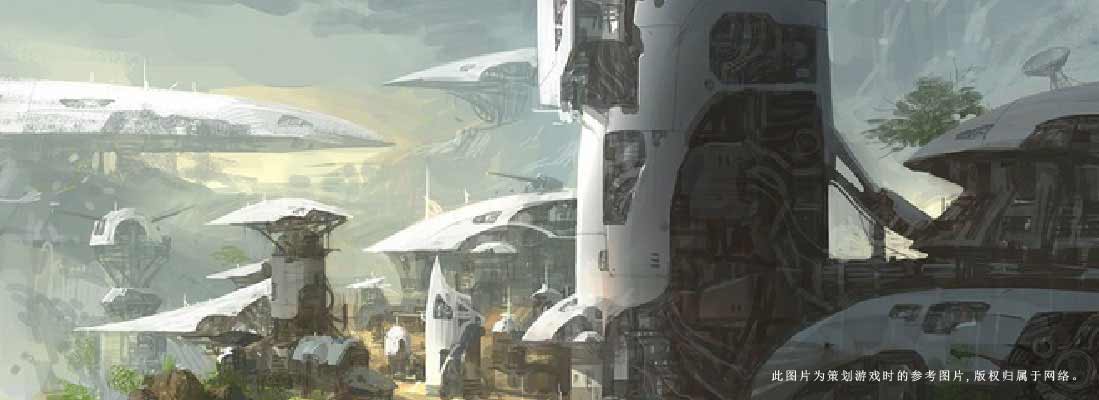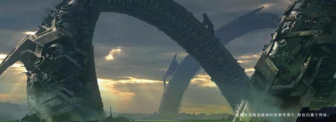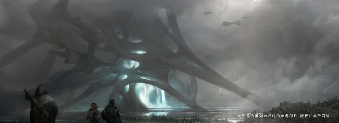 外星文明的星球上,建筑是一些根基巨大而身体细小并且具有一定弧度的形式,这里几乎所有的设施都具有一定的弧度,并且场景力有一艘巨大的外形飞船向地面散发着异样的光芒。总体上来说要给人一种异星文明的感觉,有别与人类文明的建筑。