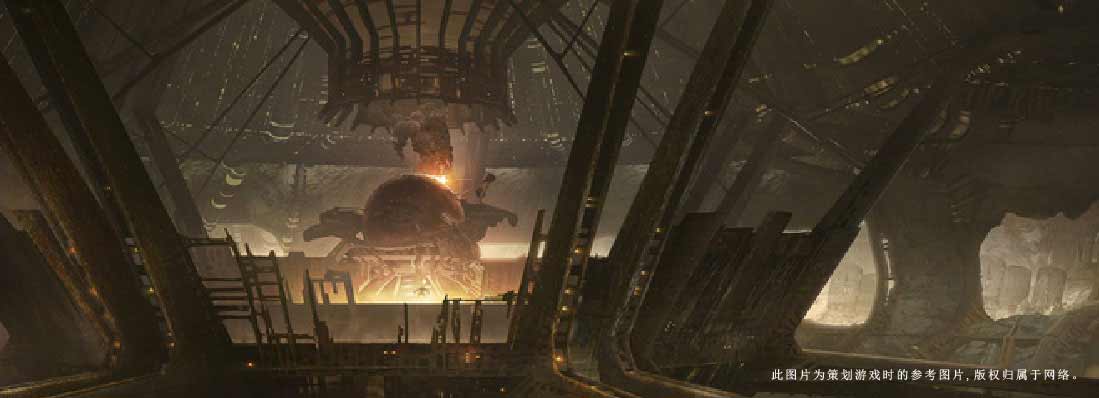 星际猎人聚集的巨大飞船上,上面珍藏了各种星际怪物的头颅和各种各样的装备,在一个角落还有星际猎人的备用机械爪和机械钳,猎人的飞船上暗藏了一些了阻止人们进入的机关,猎人的飞船上光线并不是很明亮,进入里面会让人有一种恐惧感和萧杀感,场景里会有一些黑暗的角落,让人觉得自己是猎物的感觉。